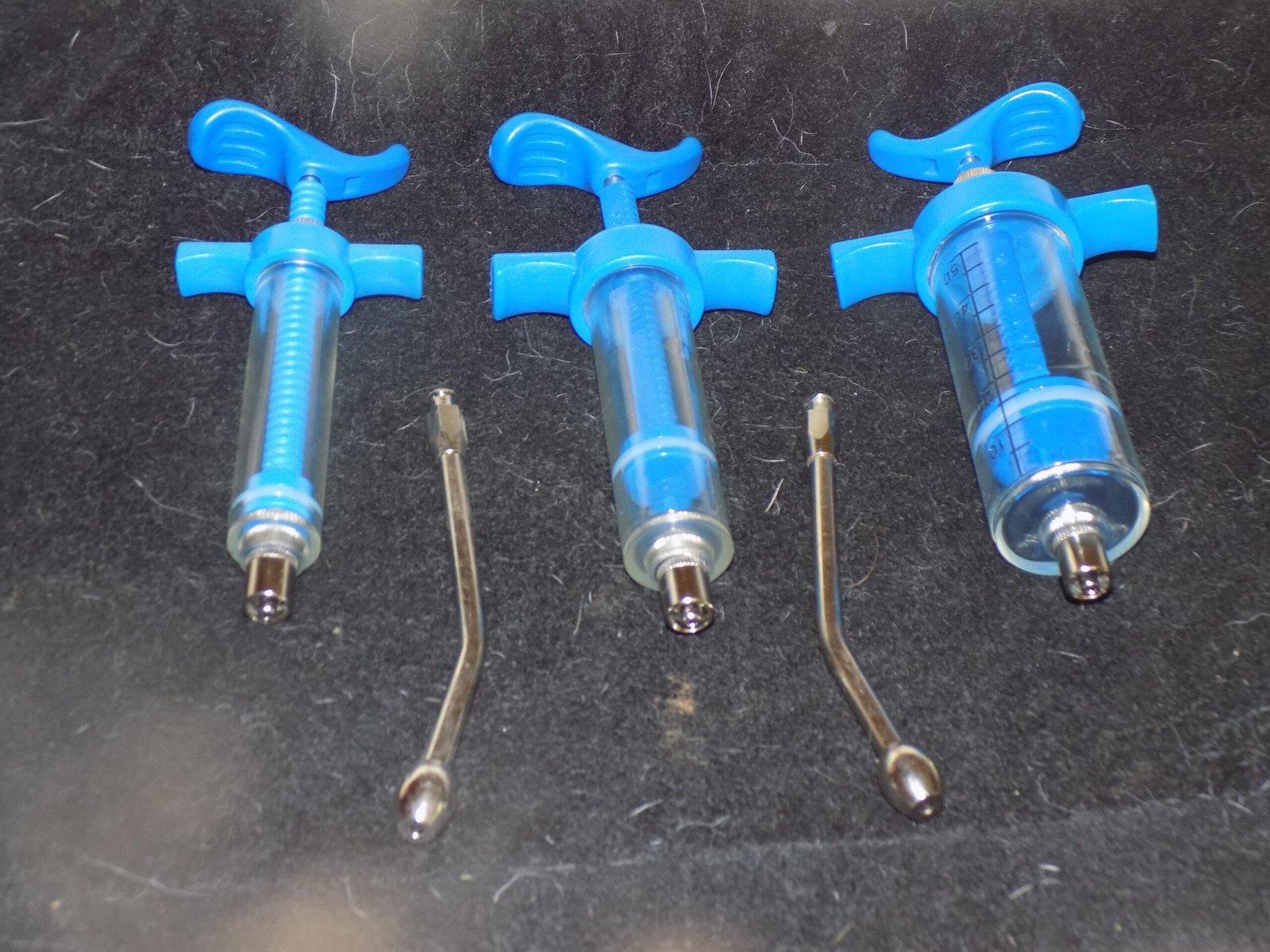 Our multi-use syringes handle everything from liquid dewormers to topical medications. Choose 10 cc, 20 cc, or 50 cc applicators to cover doses from 2 cc up to 50+ cc. Each syringe includes a metal dispenser tip at no extra cost. The tip removes easily so you can attach an injection needle when needed (e.g., Bovi-Seri).